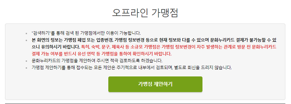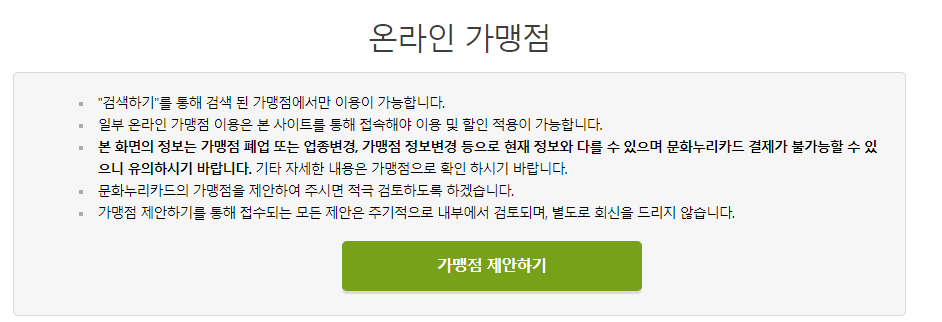 따라서 문화누리카드 사용 전 온라인에서 가맹점 여부를 확인하는 것이 중요합니다. 등록된 가맹점에서만 문화누리카드로 결제가 가능하므로 사전에 가맹점 확인 절차를 거치는 것이 필요합니다.