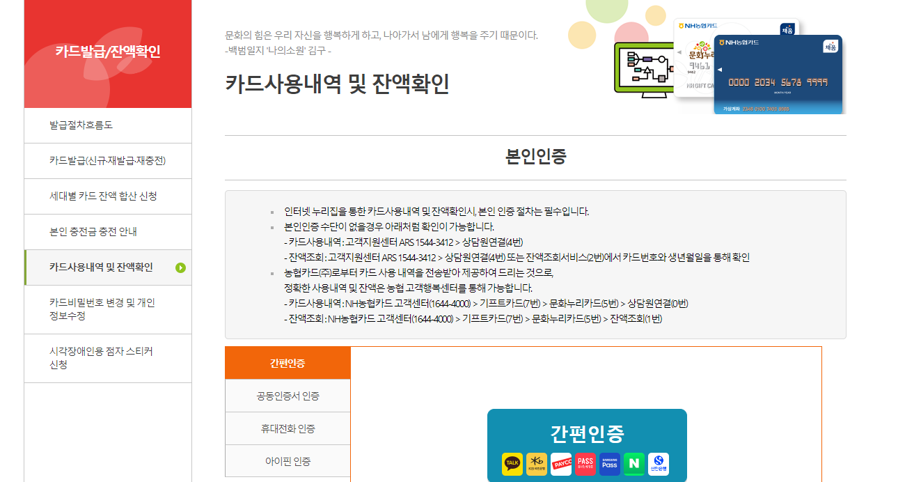 문화누리카드 잔액조회 방법