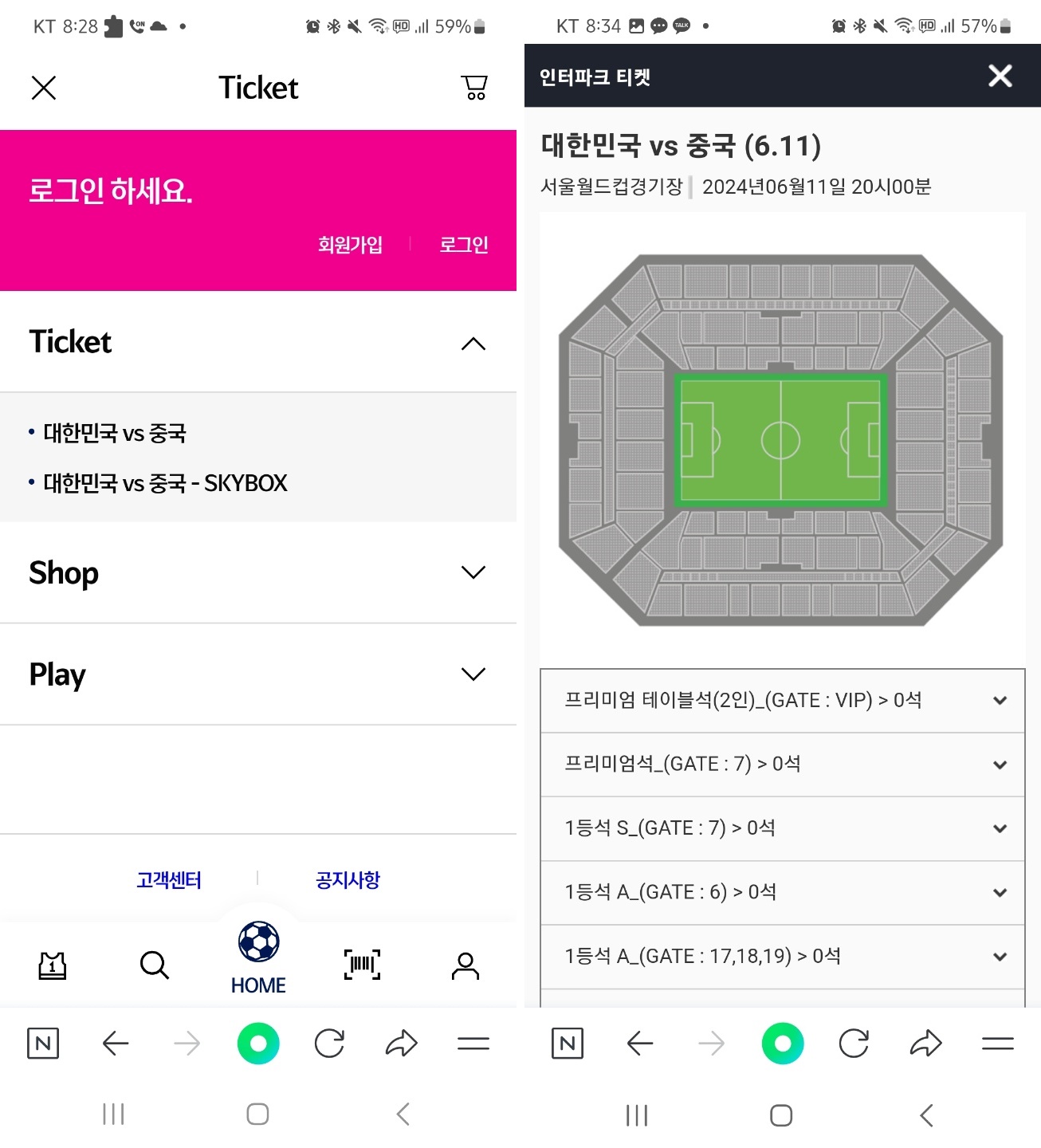 대한민국 VS 중국 티켓예매