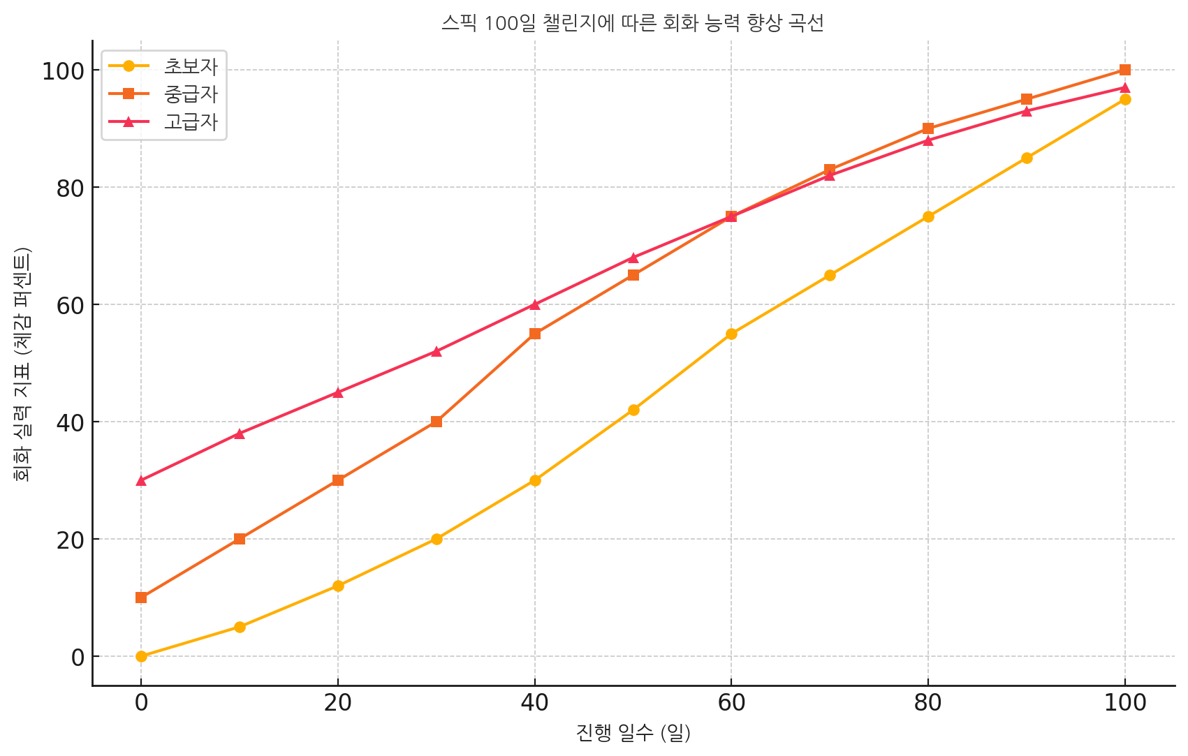 스픽 100일 챌린지 회화 능력 향상 그래프 요약