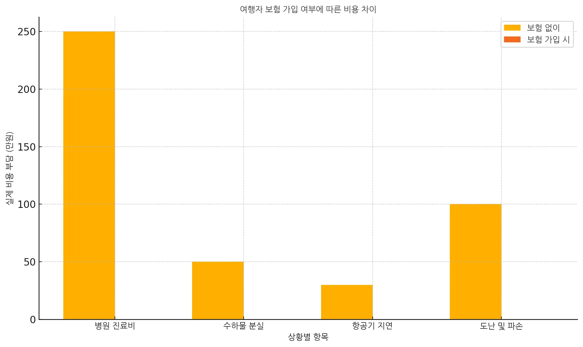 여행자 보험 가입 여부에 따른 비용 차이 그래프