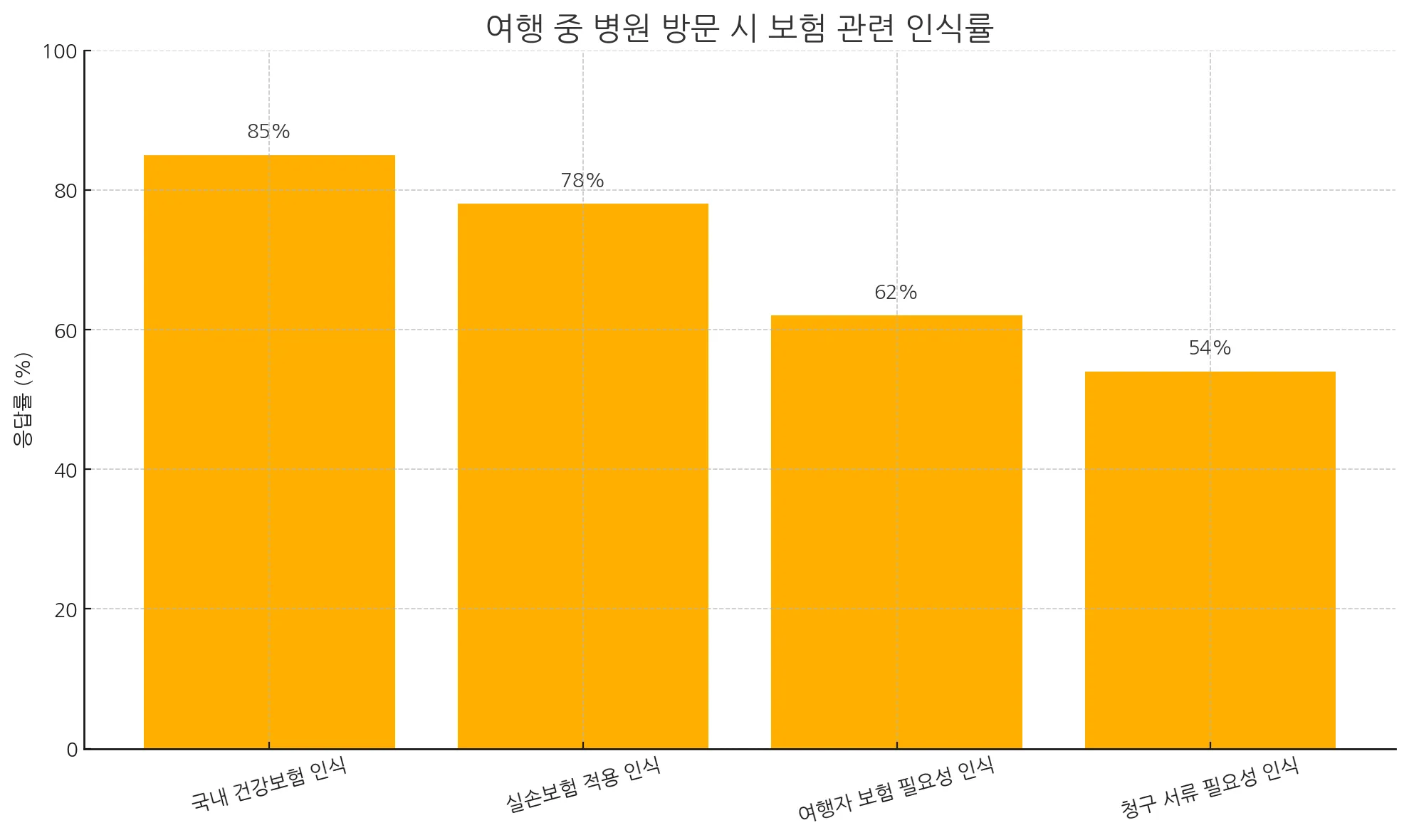 - 여행자 보험의 중요성은 62%로 낮은 편