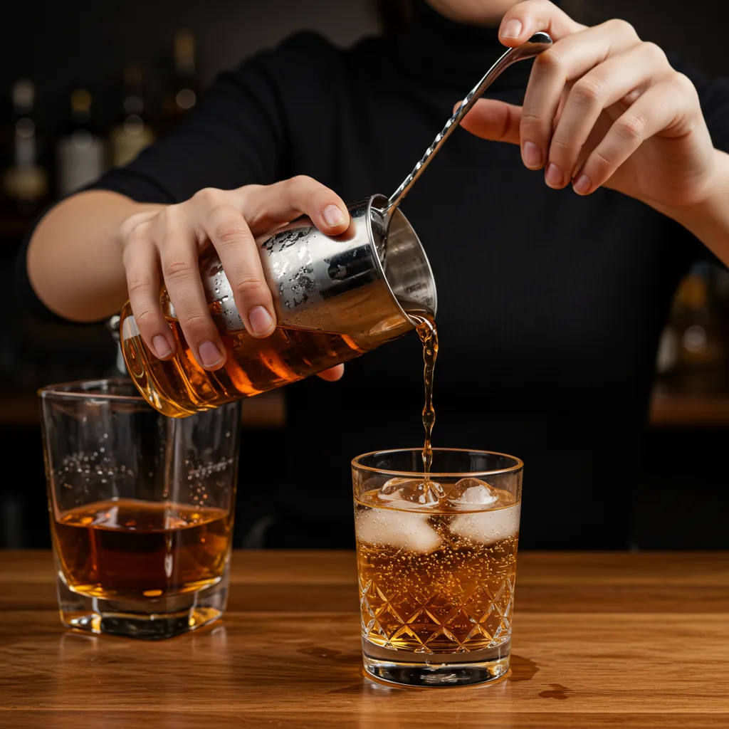 3️⃣ 위스키 추가 – 30ml를 붓습니다.