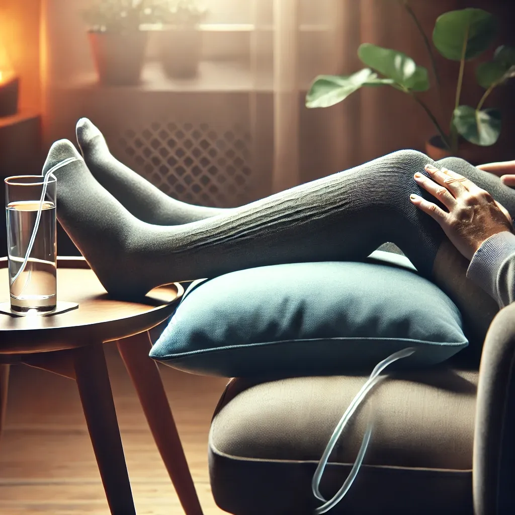 - 누워 있을 때 베개나 쿠션을 이용해 다리를 심장보다 높게 유지하세요.