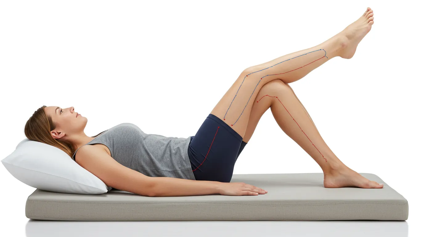 침대에 누워 다리를 올릴 때 15도~20도 각도로 유지하는 것이 가장 효과적입니다.