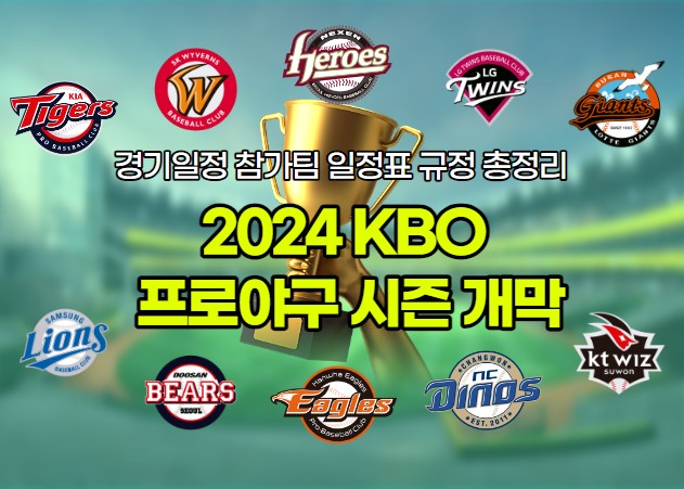 이번 포스팅에서는 2024 KBO 프로야구 시즌의 개막일정, 참가팀, 일정표, 그리고 새로운 규정에 대해 총정리해 보겠습니다. 개막일정은 언제인지, 어떤 팀들이 참가하는지, 경기 일정은 어떻게 구성되어 있는지,그리고 새롭게 시행되는 규정은 어떤 내용인지 자세히 알아보도록 하겠습니다.